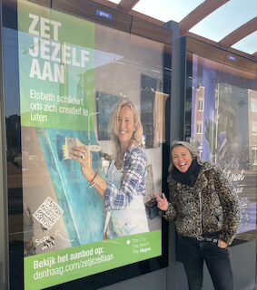 ![]() Beeldend kunstenaar Elsbeth Morra woont en werkt al ruim 16 jaar op Scheveningen. Haar schilderijen zijn intuïtief, kleurrijk en grotendeels abstract. Naast vissen vormen ook teksten regelmatig een terugkerend element in haar werk, vaak geïnspireerd door muziek, spreuken of haar eigen hersenspinsels. |